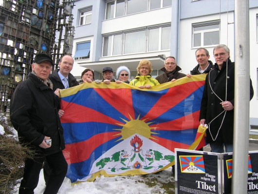 Flagge für Tibet weht am Rathaus