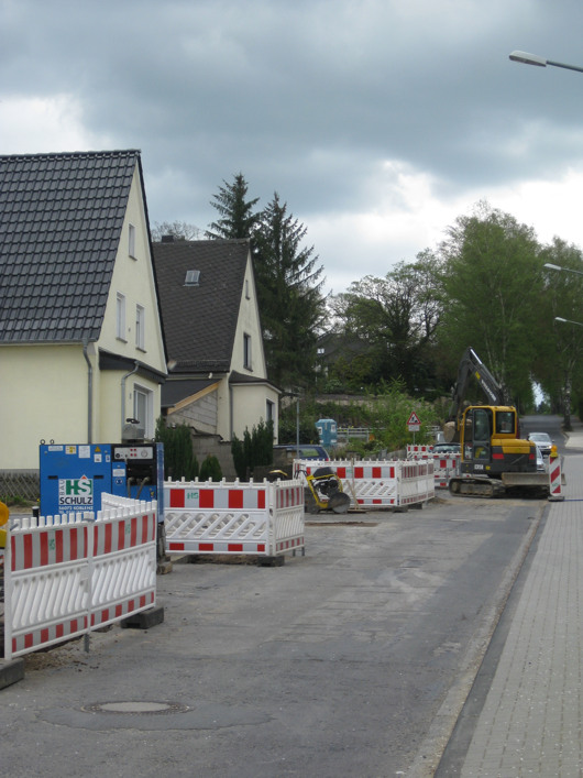 Blick auf die Bergstraße mit den "Kopflöchern" für die Hausanschlüsse
