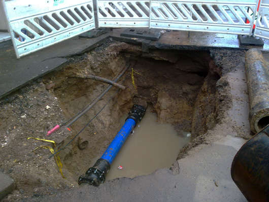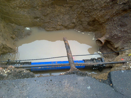 Am Donnerstag, 06.01.2011, kam es in den Abstunden zu einem Wasserrohrbruch in der Mittelstraße in Höhr-Grenzhausen. Der Wasserrohrbruch führte zu einem Einsatz der Freiwilligen Feuerwehr Höhr-Grenzhausen und die Mitarbeiter der Verbandsgemeindewerke waren bis in die späte Nacht hinein im Einsatz. Die defekte Leitung konnte repariert werden und heute Morgen musste die weitere Vorgehensweise abgesprochen werden. Für den Verkehrsfluß in Höhr-Grenzhausen bedeutete der Wasserrohrbruch eine erhebliche Beeinträchtigung, die Mittelstraße musste komplett für den Verkehr gesperrt werden. Umleitungsstrecken wurden ausgeschildert. Am frühen Nachmittag konnte dann die Entscheidung getroffen werden, dass ab den Abendstunden der Verkehr in der Mittelstraße einspurig, geregelt durch eine Ampelanlage, freigegeben werden kann. Dennoch wird es vermutlich am Montag zu erheblichen Verkehrsstaus in der Mittelstraße kommen, wenn die Schulferien beendet sind. Hinzukommt eventuell eine Umleitung durch das Hochwasser am Rhein bzw. in Vallendar.