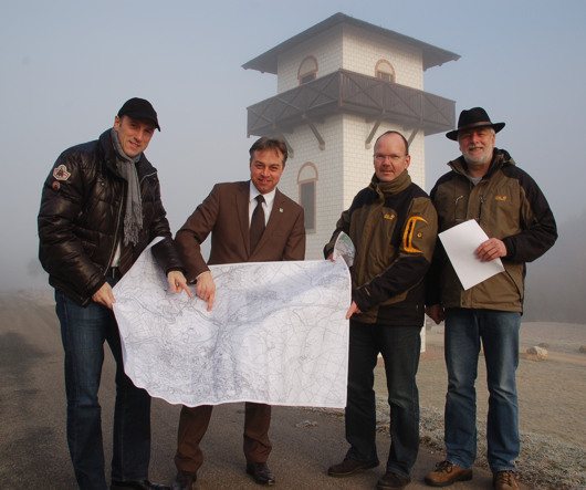 Erste Besprechung vor Ort, v.l.n.r.: Bernhard Münz, Michael Merz, ich, Eckhard Kilian
