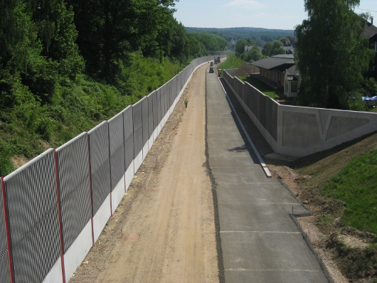 In den letzten beiden Tagen ist ein neuer Bauabschnitt an der Umgehungsstraße sichtbar geworden. Nachdem die Lärmschutzwände montiert wurden, beginnen nun die Arbeiten für den eigentlichen Straßenbelag. Aktuell wird die Deckschicht für die zukünftige Fahrbahn in den Straßenkörper eingebaut.