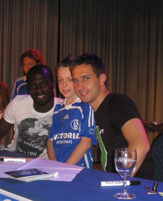 Nicht ganz so sportlich ging es dann am Sonntag zu. Der Schalke-Fan-Club “Deutsches Eck” veranstaltet in Höhr-Grenzhausen, im Saal der KG Grau-Blau, einen Spielempfang. Der Vorsitzende des Vereins, Harry Becker, konnte die aktuellen Spieler Hans Sarpei und Mario Gavranovic begrüßen. Die beiden Bundesligaprofis stellten sich den Fragen der Fans und standen für Fotos und einer Autogrammstunde zur Verfügung.