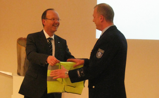 Axel Simonis wurde als stellvertretender Wehrleiter entpflichtet. Zum Dank gab es ua. eine Warnweste, damit Axel bei all seinen Einsätzen gut geschützt ist.