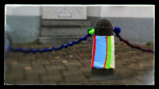Das war mal ein abwechslungsreicher Nachmittag. Erst im Kinderhort des Jugendhauses “Zweite Heimat” Plätzchen backen und dann im offenen Jugendtreff ein paar Reihen Häkeln für das Projekt “Guerilla Stricken”. Unter der fachlichen Anleitung von Frau Weber konnte ich tatsächlich ein paar Reihen auf die Nadel bekommen. Was mich aber wirklich erstaunt hat, dass eben Kinder, auch Jungs, sich die Nadeln gegriffen haben und von Frau Weber und den Mitarbeitern des Jugendhauses angeleitet wurden. Jung und “Alt” an einem Tisch, das hat Spaß gemacht und Freude bereitet. Die ersten Erfolge des Jugendhauses können bereits in der Öffentlichkeit bestaunt werden.