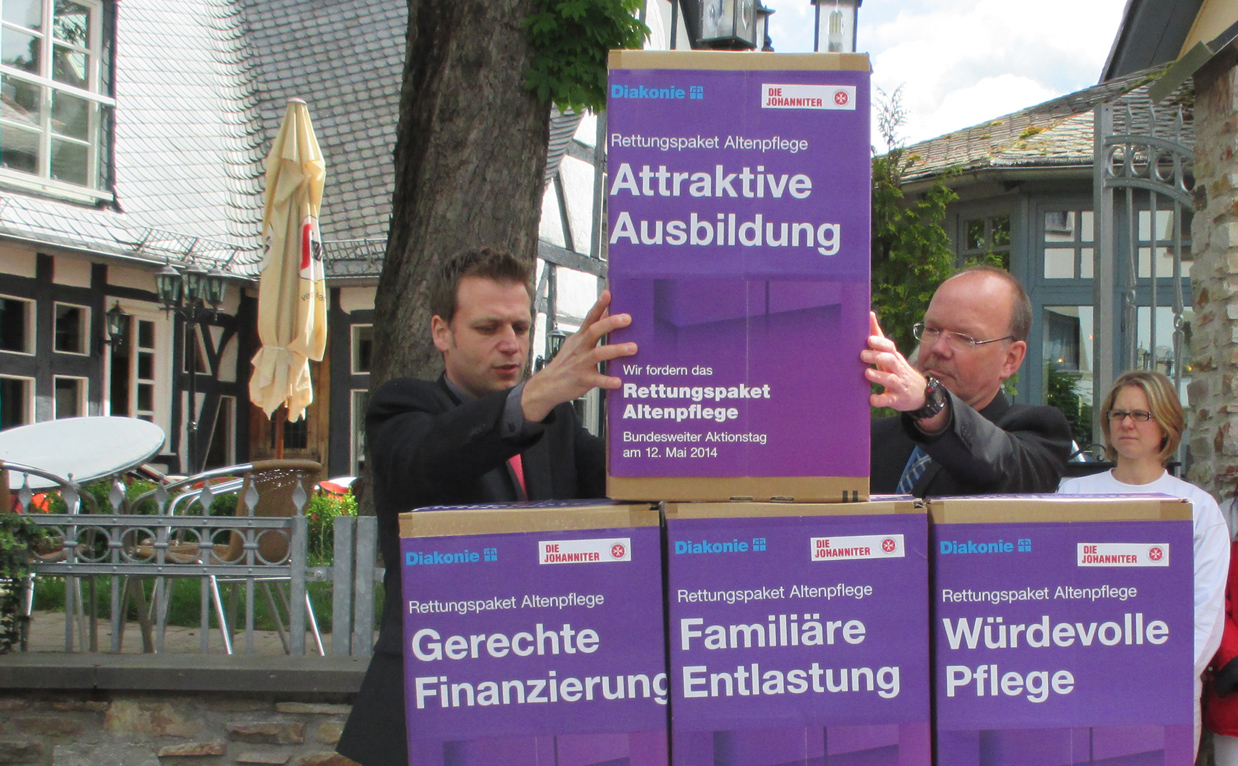 Der bundesweite Aktionstag zum Thema Altenpflege der Diakonie wurde in Höhr-Grenzhausen durch die Johanniter-Unfall-Hilfe umgesetzt. Am Alexanderplatz war ein Informationsstand eingerichtet und mit Passanten wurde über das Thema gesprochen.