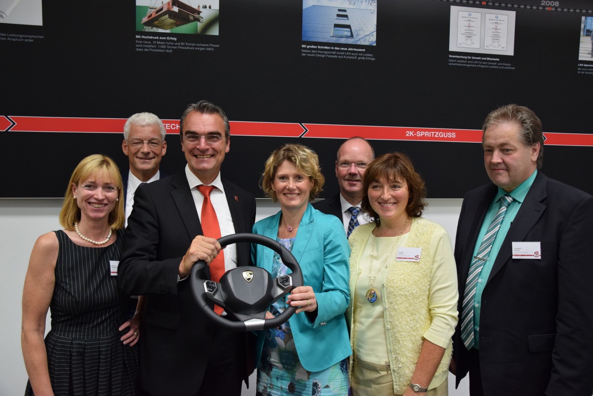 Bei LKH konnte ein guter Einblick in die modernste Fertigung von Kunststoffteilen gewährt werden. Aus gutem Grund war LKH die erste Station an diesem Tag. Dr. Guido Stannek, Vorsitzender des IMKK e.V. und Mitglied der Geschäftsführung von LKH, präsentierte das Kunststoffunternehmen und stellte Frau Ministerin Lemke den Vorstand vor. In den Räumlichkeiten von LKH konnten sich weitere Mitgliedsfirmen (Weberit Dräbing Gruppe, EWM, Maschinenbau Böhmer GmbH) des Cluster, anhand von interessanten Präsentationen, vorstellen.