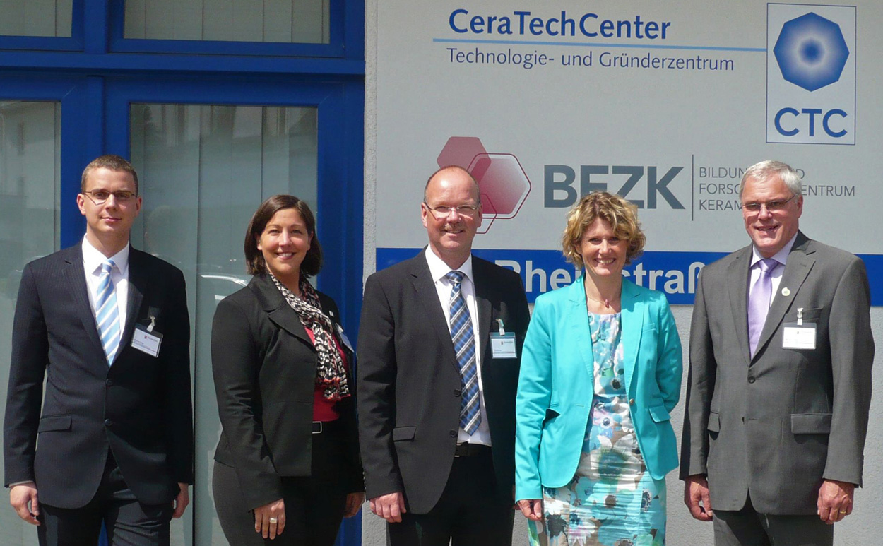 Das CeraTechCenter als Station auf der Sommerreise von Ministerin Lemke, v.l.n.r: Michael Voigt (WfG Kannenbäckerstadt), Katharina Schlag (WfG Westerwald), ich, Ministerin Eveline Lemke, Stadtbürgermeister Michael Thiesen