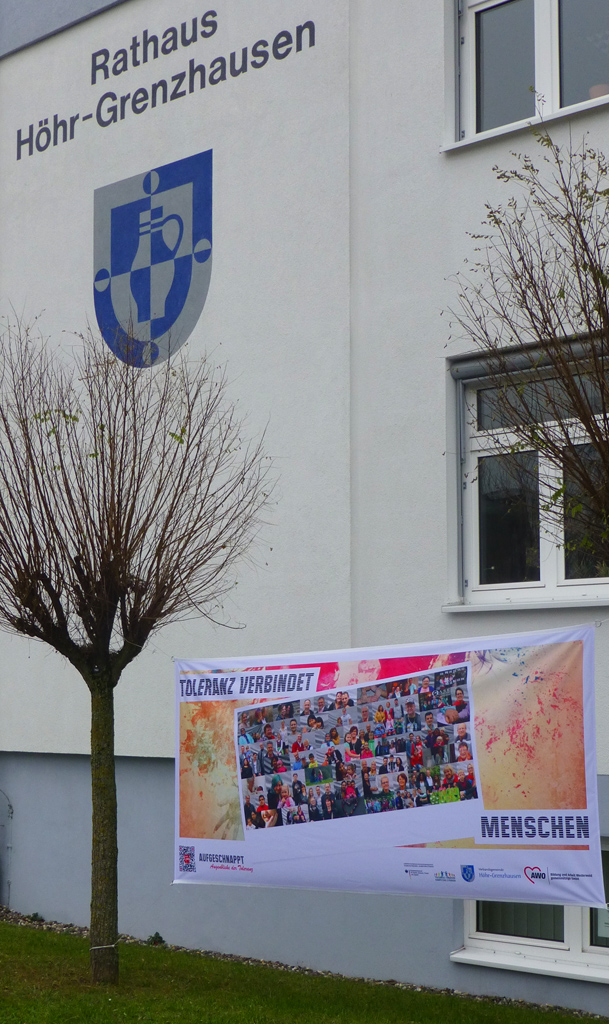 An unterschiedlichen Stellen werden in der Stadt Höhr-Grenzhausen Banner mit verschiedenen Motiven zum Projekt noch eine ganze Weile auf die “Augenblicke der Toleranz” aufmerksam machen.