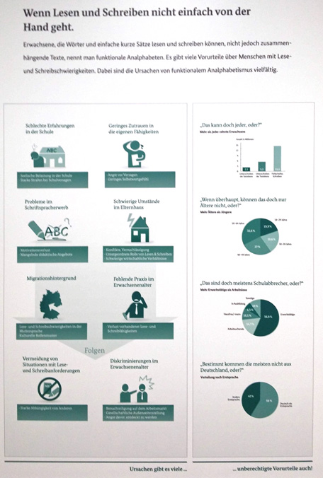 eröffnen. Rund 7,5 Millionen Menschen in der Bundesrepublik Deutschland im Alter von 18 – 63 Jahren haben Schwierigkeiten beim Lesen oder Schreiben. Lesen und Schreiben gehört zur Grundbildung und sind sicher der Schlüssel zur Welt. Mit der Ausstellung soll ein Tabu-Thema in die Öffentlichkeit gerückt werden und Hilfestellung für die Betroffenen angeboten werden.