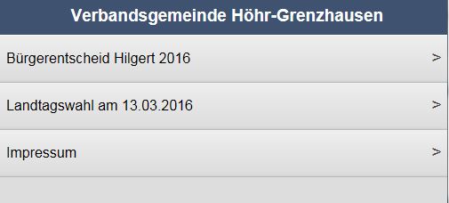 Im Amt Landtagswahl 2016 und Bürgerentscheid in Hilgert von TBecker 13. März 2016 Die Ergebnisse zur Landtagswahl für die Verbandsgemeinde Höhr-Grenzhausen und das Ergebnis zum Bürgerentscheid in Hilgert gibt es online unter www.wahlergebnisse.hoehr-grenzhausen.de http://wahlergebnisse.hoehr-grenzhausen.de/webapp/ Beitrags-Navigation Vorheriger Beitrag Vorheriger Beitrag Nächster Beitrag Nächster Beitrag