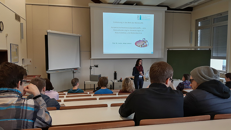 Beim heutigen Tag der offenen Tür am Westerwaldcampus konnten sich die interessierten Besucher von der unglaublichen Vielfältigkeit der Hochleistungskeramik überzeugen. Die Probevorlesung von Frau Prof. Dr. techn. Liersch hat mich begeistert. Die kurze Darstellung der Anwendungsgebiete für Hochleistungswerkstoffe bot einen guten Überblick über das Ausbildungsgebiet der Werkstoffwissenschaft. Welche Möglichkeiten der Werkstoff Keramik in Kombination von Keramik/Metall oder Keramik/Keramik bietet, ist verblüffend. Die Eigenschaften (Hochtemperaturbeständigkeit, Verschleißfestigkeit, Korrosionsbeständigkeit usw.) der Hochleistungskeramik sind für viele Anwendungsgebiete unabdingbar.