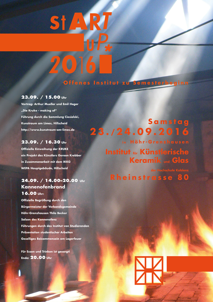 Am 23. und 24. September 2016 steht die Stadt Höhr-Grenzhausen erneut im Fokus der internationalen Keramikszene. Am Institut für Künstlerische Keramik und Glas (IKKG), Rheinstraße 80, in Höhr-Grenzhausen, wird am letzten funktionstüchtigen Ofen ein Salzbrand durchgeführt. Bei rund 1280 Grad wird der Ofen am 24. September 2016 gegen 16 Uhr gesalzen.