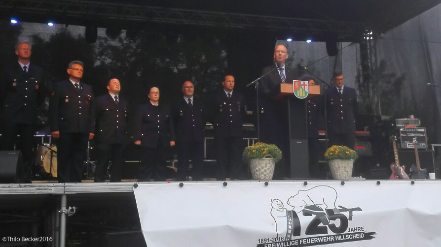 Die Mannschaft um Wehrführer Christian Dilling hat ein schönes Fest organisiert, das mich persönlich begeisterte. Leider hat dann das Wetter am Abend nicht richtig mitgespielt, als die Musikbands “Hörgerät” und “Mega-Band” ihren Auftritt hatten. Zuvor wurde durch Wehrleiter Claus Hattenbach die Chronik der FF Hillscheid beleuchtet und auch Ortsbürgermeister Andreas Rath ging auf die Stellung der Wehr im Gemeindeleben von Hillscheid ein. Beigeordneter Kurt Schüler überbrachte die Grußworte von Landrat Achim Schwickert und in meinem Grußwort habe ich die absolute Notwendigkeit der Freiwilligen Feuerwehren beschrieben. Respekt und Anerkennung muss man der Feuerwehr für das Geleistete entgegenbringen, dies brachte auch Hans-Jörg Degen vom Landesfeuerwehrverband zum Ausdruck. Wie eng die Feuerwehr mit dem Gemeindeleben verbunden ist, zeigte dann die Gratulationskur der Vereinsvertreter.