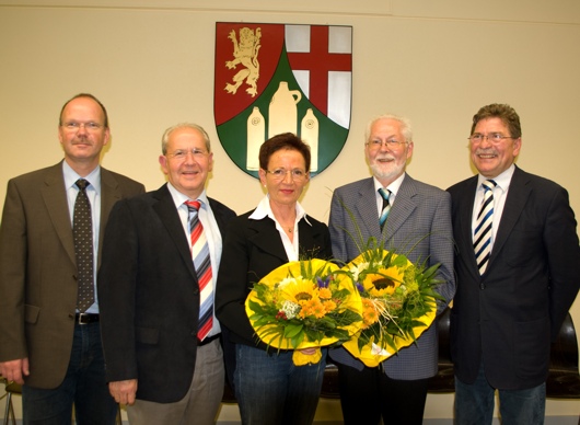 V.r.n.l.: Bürgermeister Johannsen, Beigeordneter Heller, erste Beigeordnete Freisberg, Ortsbürgermeister Breiden und ich